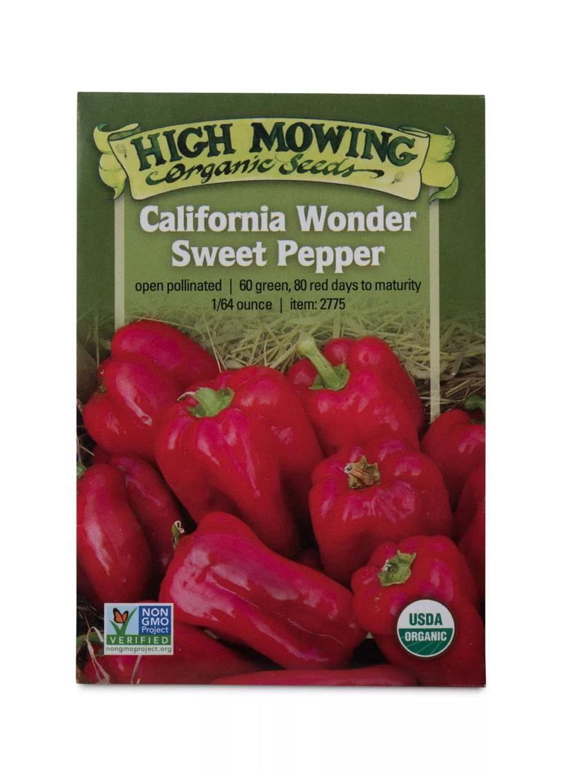 - Organic, non-GMO California Wonder sweet pepper seeds