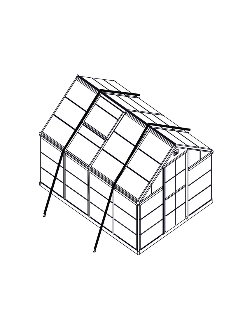 This Anchoring Kit adds extra protection against strong wind gusts, up to 62 mph. It is cleverly designed to fit your existing Palram –Canopia Greenhouse such as the Harmony, Nature, Mythos, Hybrid, Balance or Octave, and can be secured to the foundation of your choosing. This rugged and easy-to-use system gives you a series of steel cables with the necessary anchors and fasteners to keep your greenhouse snug and safe, right where you need it. If you live in an area with high winds or generally unstable weather, this simple system is a must-have. The cables simply go over the greenhouse, secured to the structure with a series of clamps, then secured to the ground with large stakes.