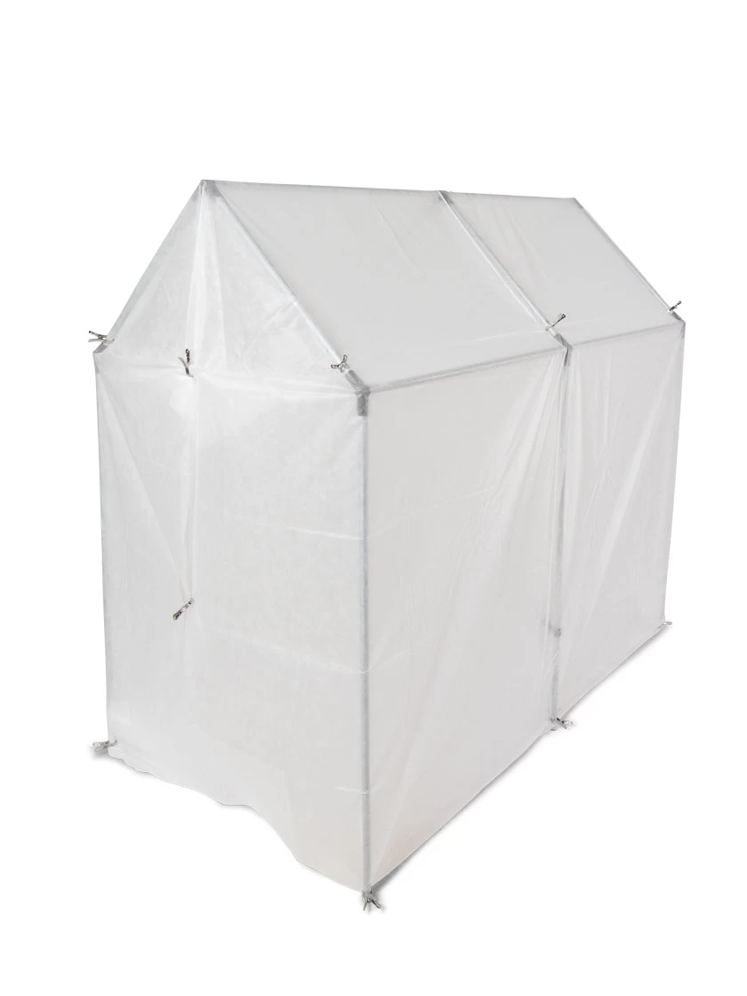 We provide instructions and connectors, you provide 3/4″ EMT (electric metal tube) available at hardware stores and is affordable. Create the frame size for garden covers that will cover your space. Build it and leave it in for years or pick it up and move it to another space. Materials are long lasting. Kit includes: 3 – roof peak angle connectors, 6 – angled side to roof connectors, 2 diagonal brace connectors.