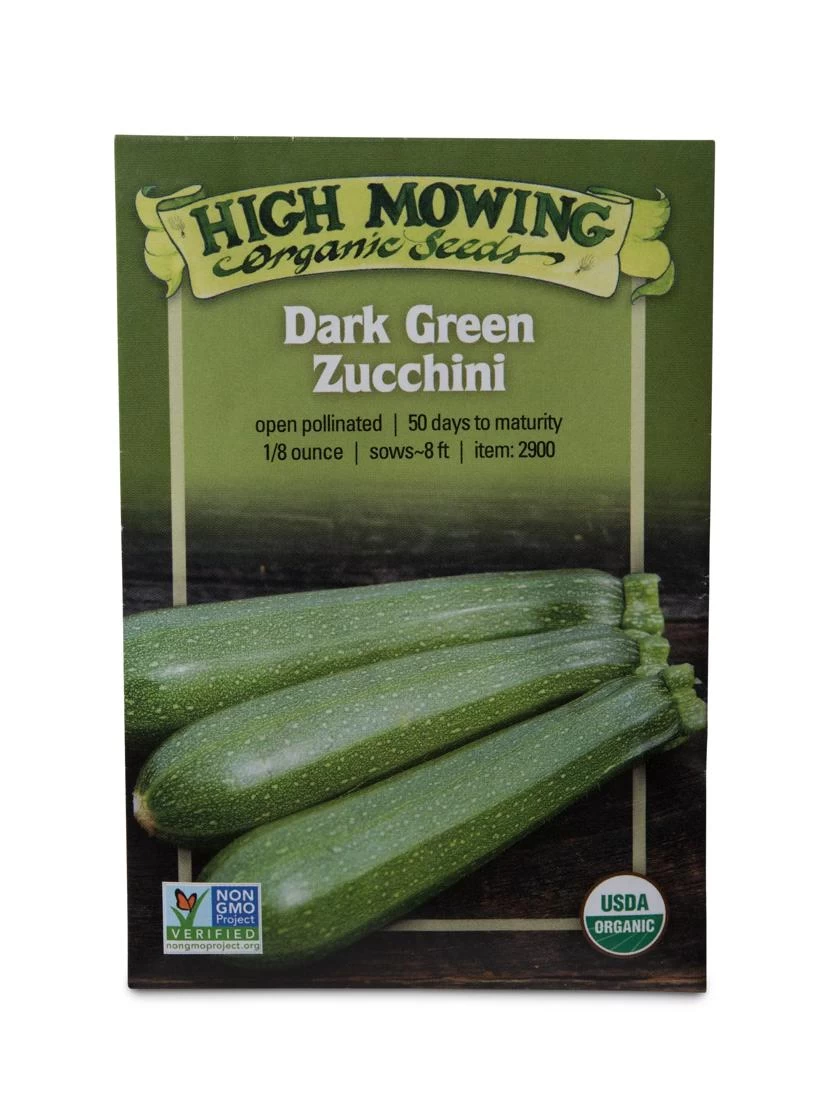 - Organic, non-GMO Dark Green zucchini seeds
