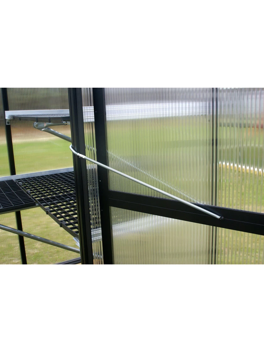 The secret is our twin-wall polycarbonate panels. They’re a triple threat! Firstly, they are light-diffusing, more evenly distributing sunlight to produce a glow instead of a light beam effect. They also offer a higher level of privacy — just 8 inches away and you can’t see into the greenhouse. Finally, the twin-wall panels act like a double-pane window, providing insulation to extend your growing season and increase your energy efficiency in every season. But that doesn’t mean we leave climate control up to chance!